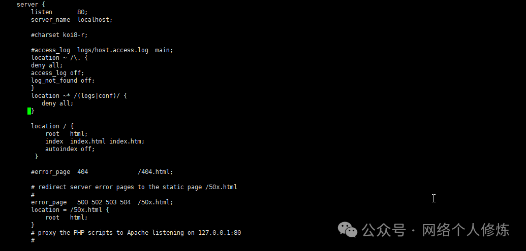 通过location规则屏蔽敏感文件和目录: