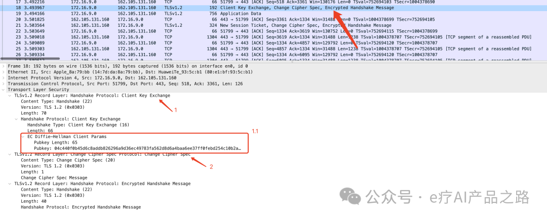 1. 密钥交换(Key Exchange):建立共享的密钥材料并选择加密参数,此阶段之后的所有内容都是加密的