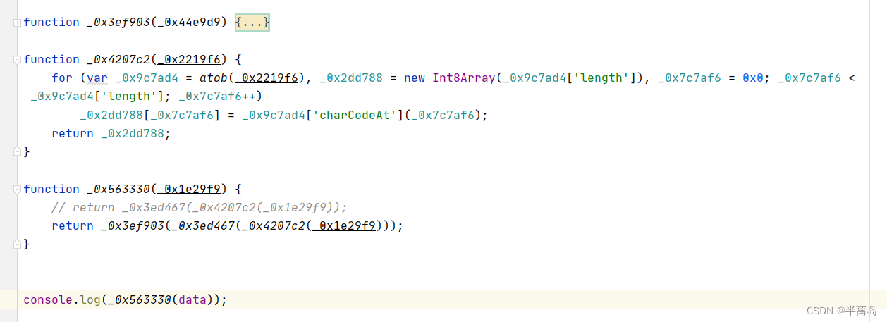 • 1、一般由一个大数组或者含有大数组的函数、一个自执行函数、解密函数和加密后的函数四部分组成;