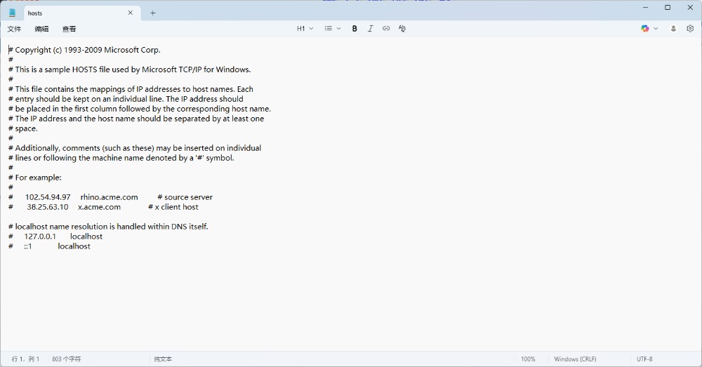 如果有小伙伴不想安装 switchhosts 这个工具,也可以直接修改 Hosts 文件。