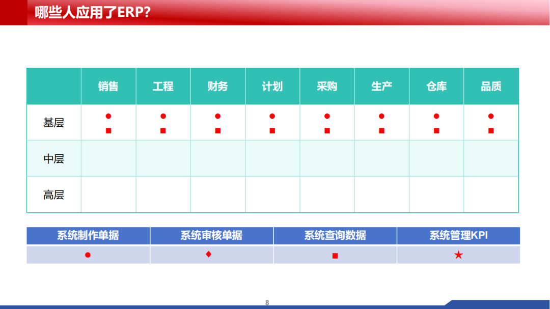 在这个阶段,ERP成为员工工作不可或缺的工具,ERP系统真正地拉通了产供销业务流程,产供销运营单据及审核,基本通过ERP系统完成,员工完全适应了系统的语言及系统工作方式