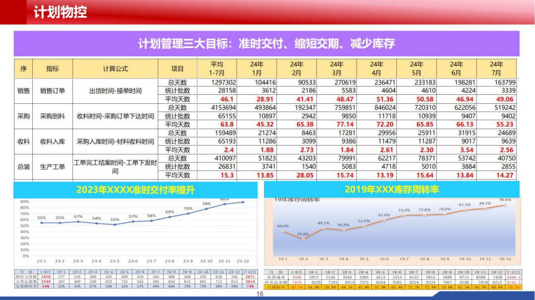 BOM数据、库存数据、订单数据准确率至少98%以上,系统单据时间与实际运行时间相符,通过ERP系统指标管理公司运营,供应商准时到货率、工单及时完工率、准时交货率至少达到90%以上,针对材料成品库存进行分析改进……