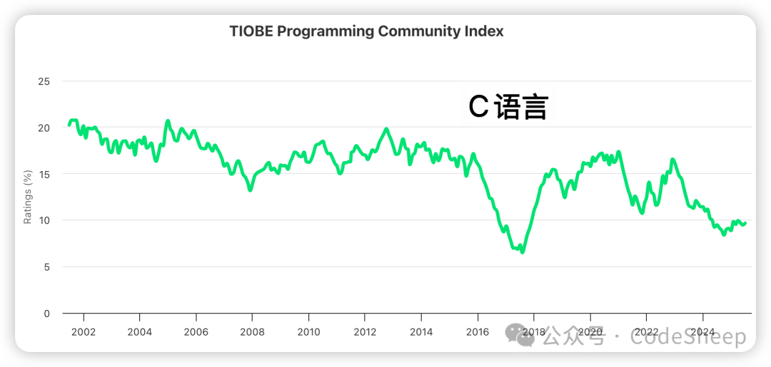 ![]() 其中 Python 可谓是一骑绝尘,与排名第二的 C++ 甚至拉开了近 17% 的差距,呈现了断崖式领先的格局。 不愧是 AI 领域当仁不让的“宠儿”,这势头其他编程语言简直是望尘莫及! 另外还值得一提的就是 C 语言。 最近这几个月 C 语言的 TIOBE Index Ratings 比率一直在回升,这说明其生命力还是非常繁荣的,这对于一个已经诞生 50 多年的编程语言来说,着实不易。 C 语言于上个世纪 70 年代初诞生于贝尔实验室,由丹尼斯·里奇(Dennis MacAlistair Ritchie)以肯·汤普森(Kenneth Lane Thompson)所设计的 B 语言为基础改进发展而来的。 ![]() 就像之前 TIOBE 社区上所描述的,这可能主要和当下物联网(IoT)技术的发展繁荣,以及和当今发布的大量小型智能设备有关。毕竟 C 语言运行于这些对性能有着苛刻要求的小型设备时,性能依然是最出色的。 说到底,编程语言本身并没有所谓的优劣之分,只有合适的应用场景与项目需求。 按照官方的说法,TIOBE 榜单编程语言指数的计算和主流搜索引擎上不同编程语言的搜索命中数是有关的,所以某一程度上来说,可以反映出某个编程语言的热门程度(流行程度、受关注程度)。 而通过观察一个时间跨度范围内的 TIOBE 指数变化,则可以一定程度上看出某个编程语言的发展趋势,这对于学习者来说,可以作为一个参考。 Java:我啥场面没见过![]() 曾经的 Java 可谓是互联网时代不可或缺的存在。早几年的 Java 曲线一直处于高位游走,彼时的 Java 正是构成当下互联网生态繁荣的重要编程语言,无数的 Web 后端、互联网服务,甚至是移动端开发等等都是 Java 的擅长领域。 而如今随着 AI 领域的发展和繁荣,曾经的扛把子如今似乎也感受到了前所未有的压力。 C语言:我厉兵秣马![]() 流水的语言,铁打的 C。 C 语言总是一个经久不衰的经典编程语言,同时也是为数不多总能闯进榜单前三的经典编程语言。 自诞生之日起,C 语言就凭借其灵活性、细粒度和高性能等特性获得了无可替代的位置,就像上文说的,随着如今的万物互联的物联网(IoT)领域的兴起,C 语言地位依然很稳。 C++:我稳中求进![]() C++ 的确是一门强大的语言,但语言本身的包袱也的确是不小,而且最近这几年的指数趋势稳中求进,加油吧老大哥。 Python:我逆流而上![]() 当别的编程语言都在震荡甚至下跌之时,Python 这几年却强势上扬,这主要和当下的数据科学、机器学习、人工智能等科学领域的繁荣有着很大的关系。 PHP:我现在有点慌![]() PHP:我不管,我才是世界上最好的编程语言,不接受反驳 好了,那以上就是今天的内容分享了,感谢大家的阅读。 阅读原文:点击这里 该文章在 2025/9/1 15:11:14 编辑过 |