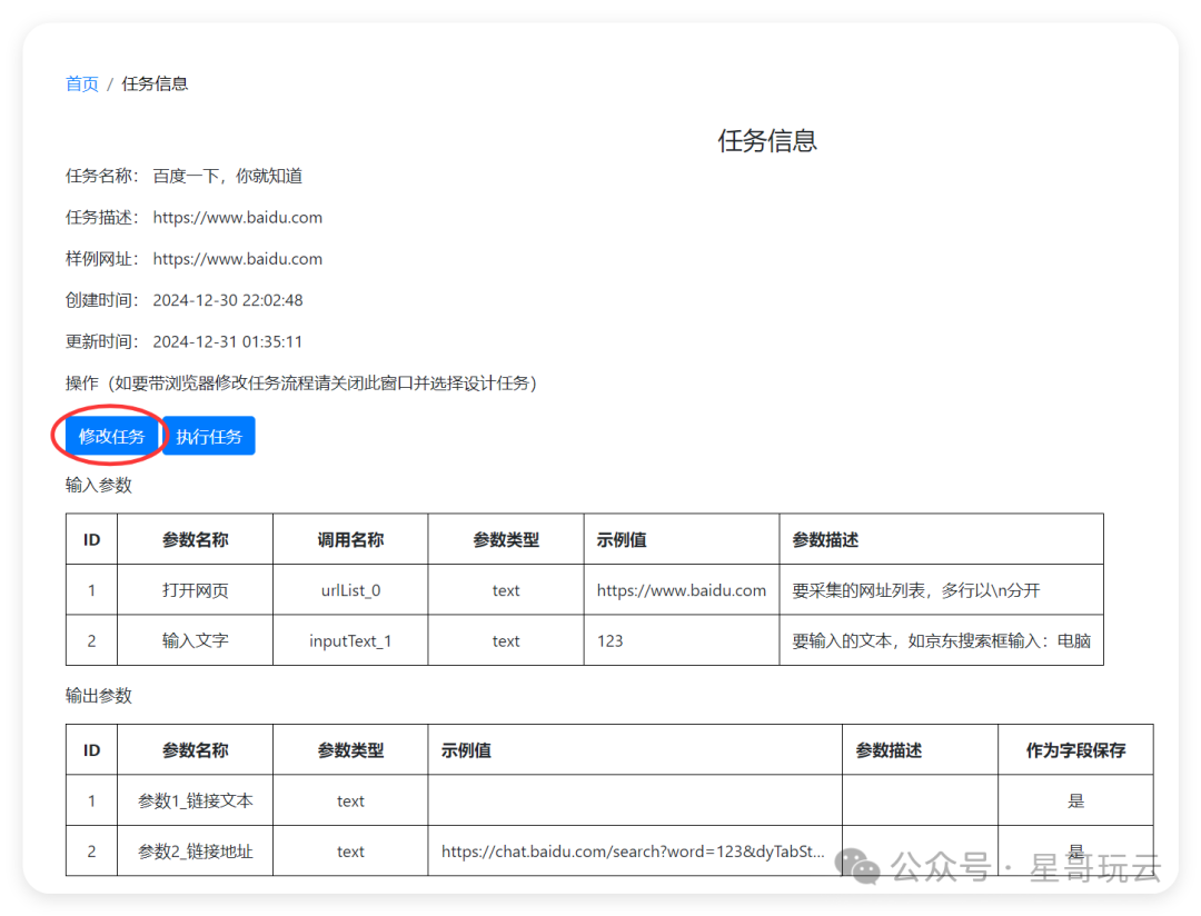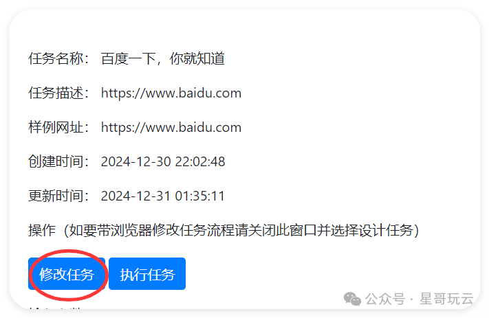 这里可以修改任务,我这里不修改,再回到任务信息中。