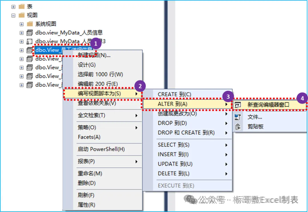 从两张图中能看出来,加密后看不到 CREATE(新建)、ALTER(修改)、创建或更改,从而阻止了更改视图的 Select 语句。 5.2 系统视图(sys.sql_modules)查看
