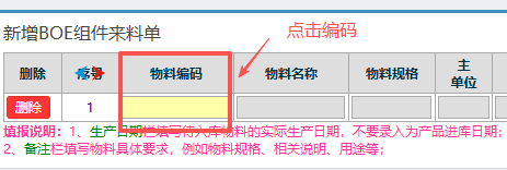5.提交之后,可以在左侧的功能菜单里找到“BOE组件来料入库单”,点击进入 ![]()