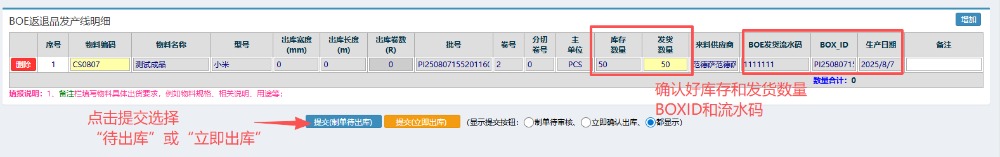 ![]() ![]() 1.进入ERP系统之后,在左侧的功能菜单里找到“BOE定制”,点开“成品返退”,点击“新增返退品发产线出库”。 2.进入界面后,按图操作:选择发货仓库,备注可根据需要补充。 3.接下来在下方点开“物料编码”,会有物料信息窗口弹出。 在弹出的物料信息窗口内,按图操作:点击选择物料大类,点击查询。然后点击对应物料信息。 4.选好物料之后,检查确认库存和发货数量,以及BOXID和流水码。点击提交选择“待出库”或“立即出库” 5.提交后,回到左侧功能菜单找到“返退品发产线出库确认” 6.进入界面后,按图操作:可用代码或名称筛选查找,点击查询。然后点击对应物料信息,先进行出库,再上传BOE 流程结束。 下一步教程跳转链接: 点晴ERP-BOE返退品生产入库流程 点晴模切ERP更多信息:http://moqie.clicksun.cn,联系电话:4001861886 该文章在 2025/9/22 16:33:38 编辑过 |