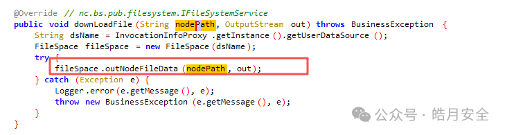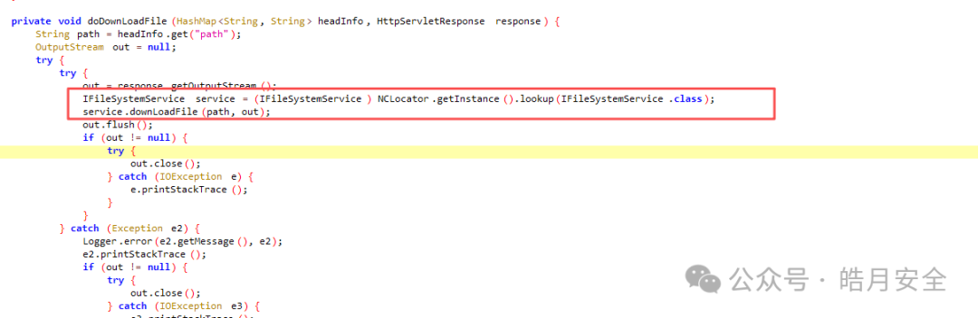 从headInfo中获取参数path,随后初始化文件系统的操作类,调用downLoadFile方法
