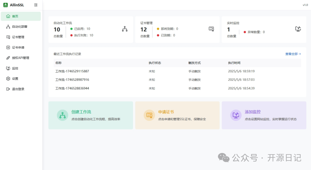 AllinSSL来了!它帮你自动化申请、续期、部署,还能轻松监控证书状态。加上支持多平台和通知提醒功能,简直是为运维人专属定制的宝藏神器!再也不怕手忙脚乱了!