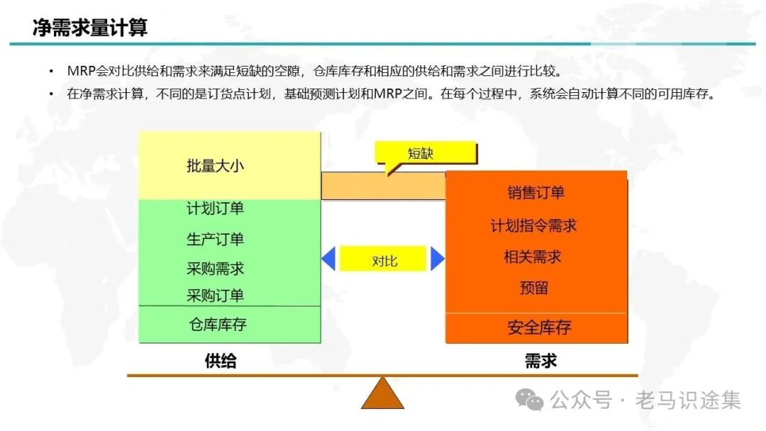 MRP运算还真是个挺复杂的计算过程,应该是ERP里最最复杂的计算过程之一,主要分为5个步骤,分别是:1净需求计算->2批量计算->3获取采购类型->4时间排程->5BOM展开。详细内容如下: