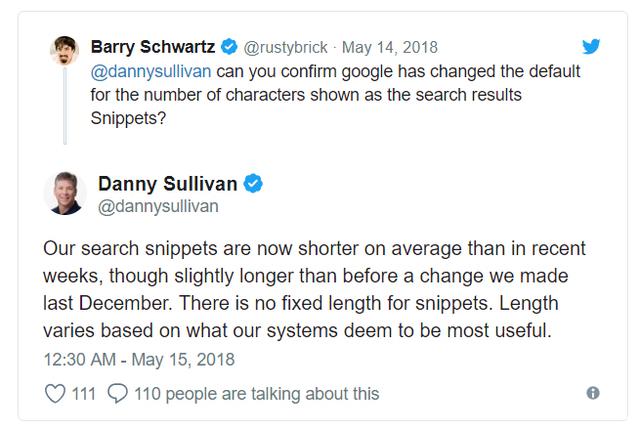 Danny Sullivan 关于谷歌缩短描述问题