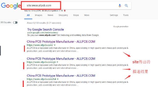 site出来的页面描述,和真实用户搜索关键词出现的页面描述是完全不一样的。不信?你可以自己试一试就知道了。
