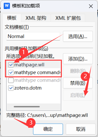 点击模板,会出现Mathtype相关插件,按照下图示操作