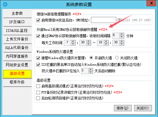 接收外部发过来的邮箱Email延迟太高了,别人发了好久才可以收到,有什么设置能快点? 【学仙】点晴客服 2015-08-17 10:06:58 点晴OA接收外部Email是通过IMAP方式收取的,需要用户点击进入Email模块,才会触发收取外部邮件动作,默认没有后台自动收取外部邮件的功能。 如果需要后台自动收取外部邮件,可以购买点晴MIS信息通PC客户端或手机APP、微信版/钉钉版,点晴MIS信息通后台服务程序提供了外部邮件自动定期后台收取的功能。 ![]() 管理员可以设置每天自动收取外部邮件的工作时间范围、收件频率等。 注意:上述功能必须在购买了点晴MIS信息通PC客户端或手机APP后才会提供,详情参见:http://im.clicksun.cn